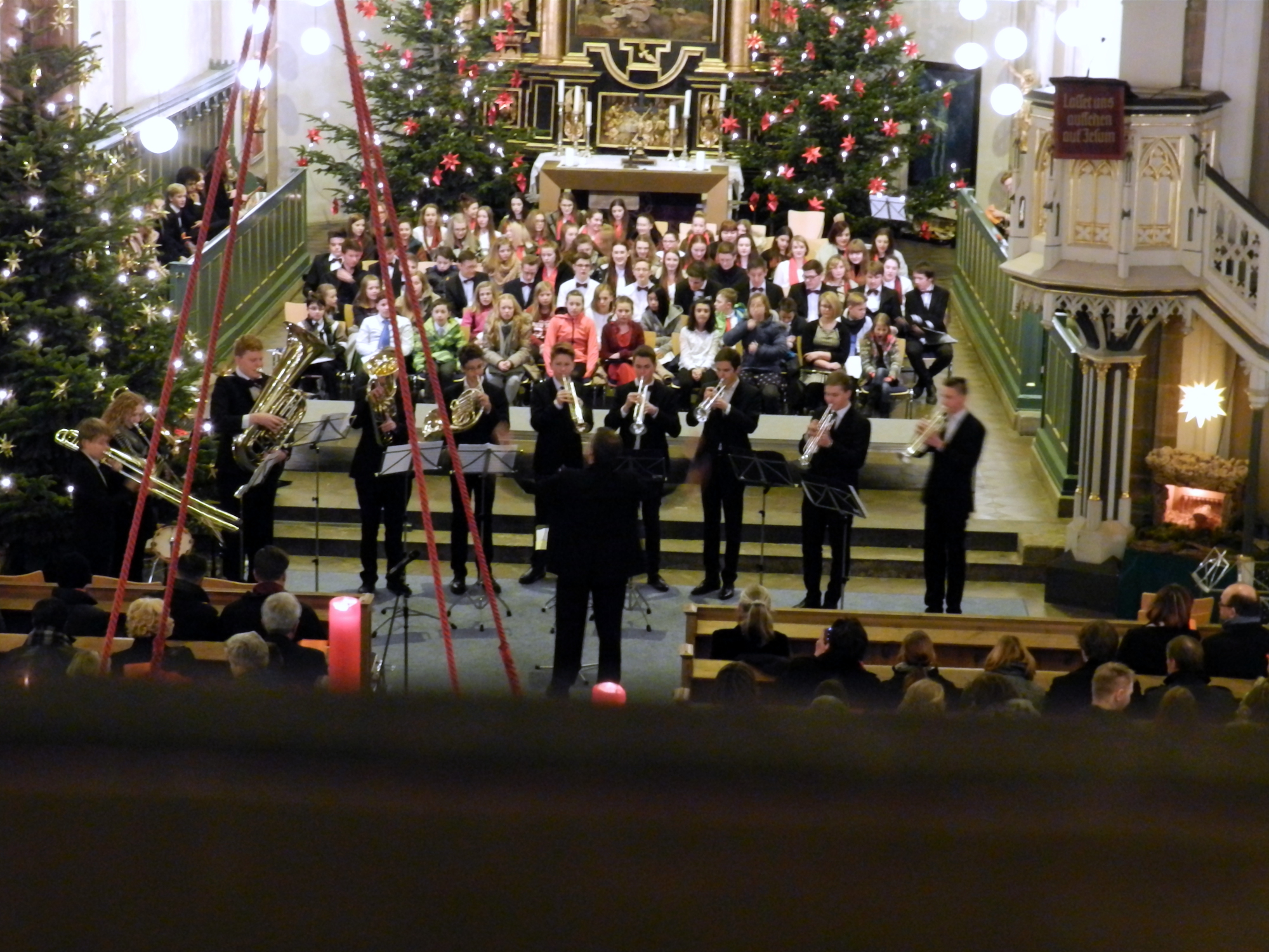 Darauf folgte das gemeinsam mit den Besuchern gesungene Stück „O Heiland reiß die Himmel auf“, welches durch das Blechbläserensemble begleitet wurde. Mit dem zweiten Stück des Ensembles, „Renaissance Christmas Suite“, schafften es die Musiker unter Leitung von Herrn Baumann das Publikum von sich zu überzeugen.