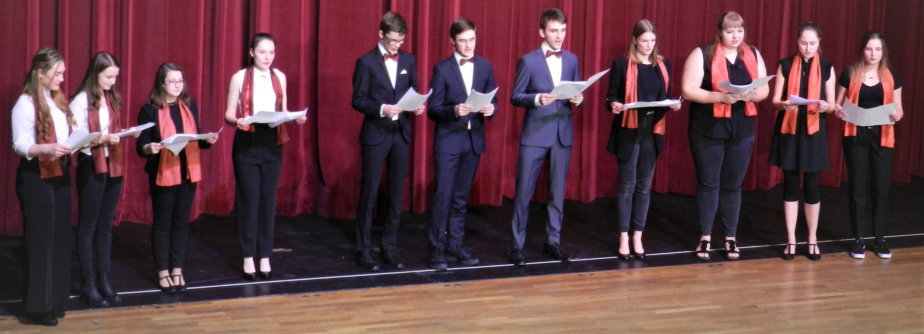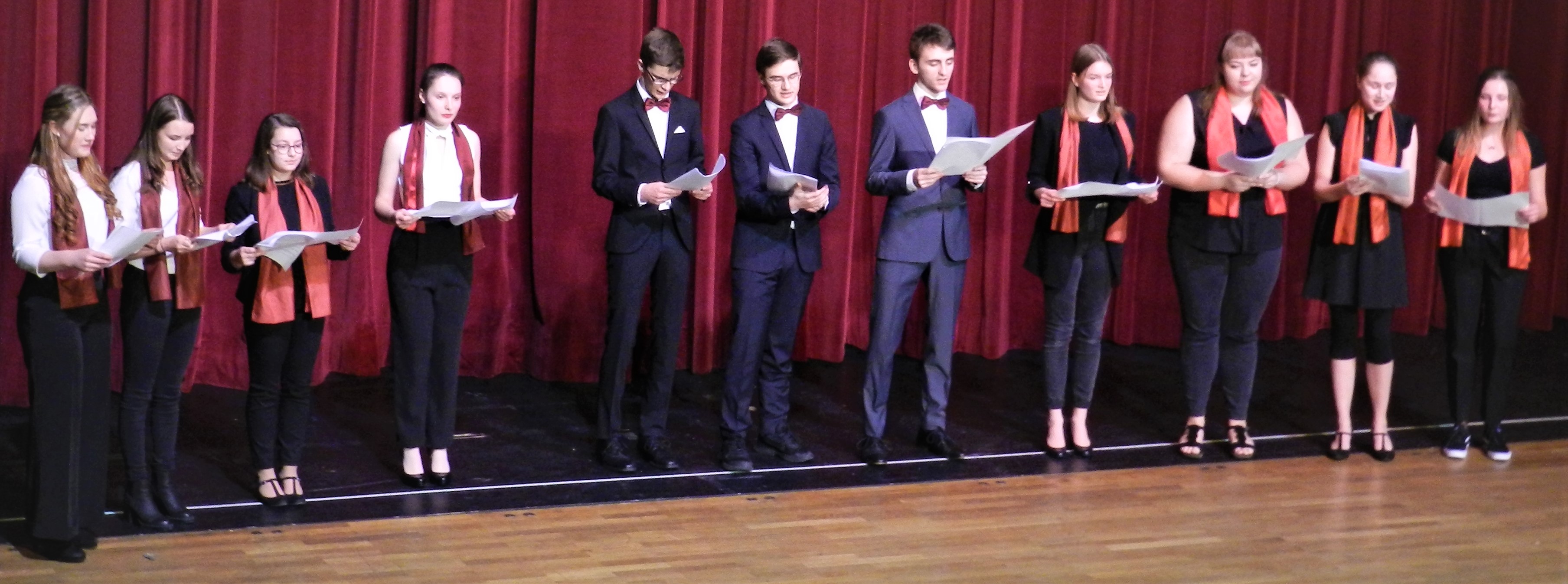 Das Vokalensemble sang die Stücke „Intrada a cappella“, „Capricciata – Contrappunto bestiale alla mente“ von Adriano Banchieri und „Hej, igazitsad“ von Lajos Bardos.