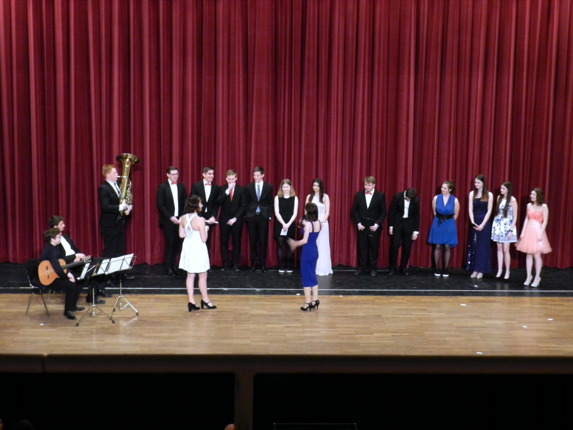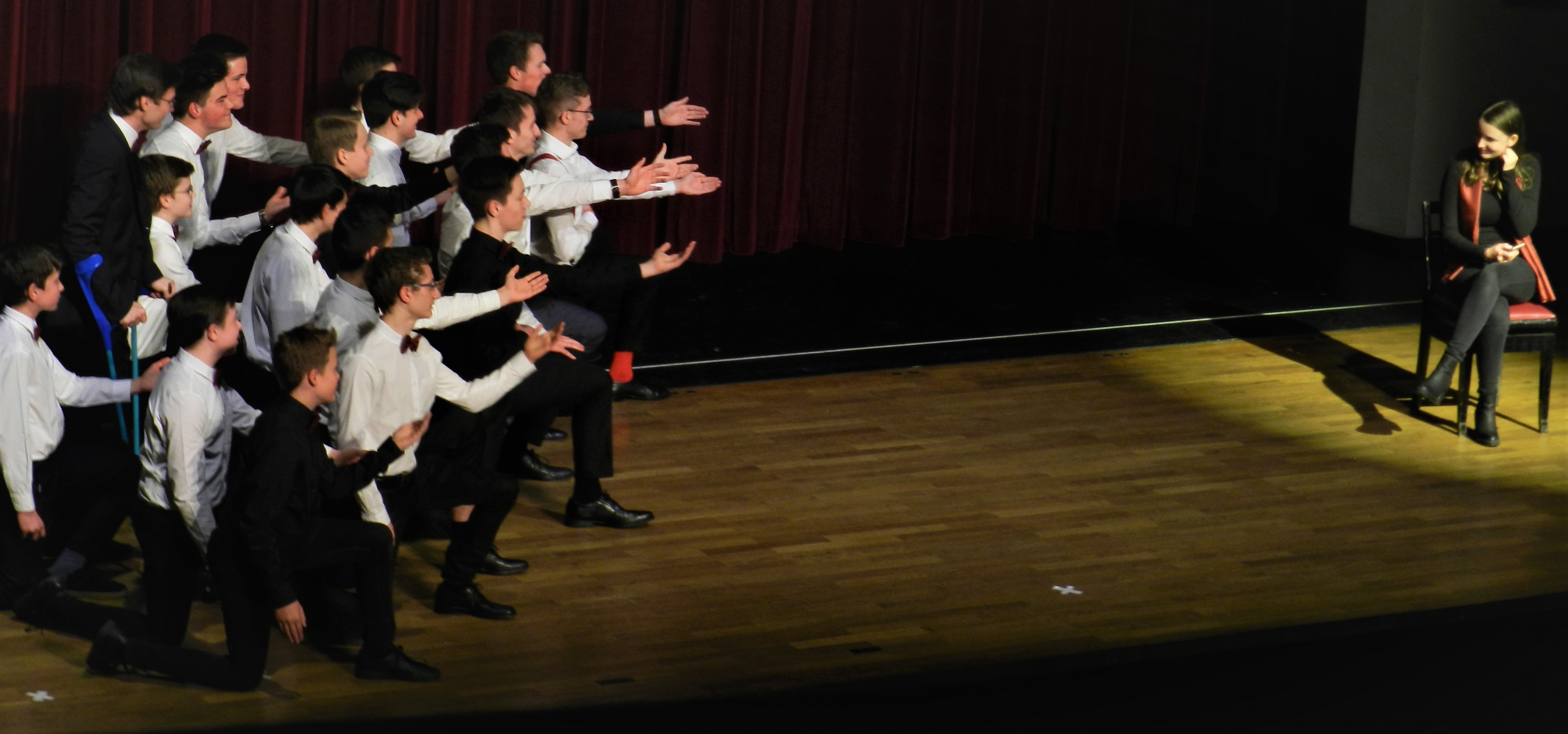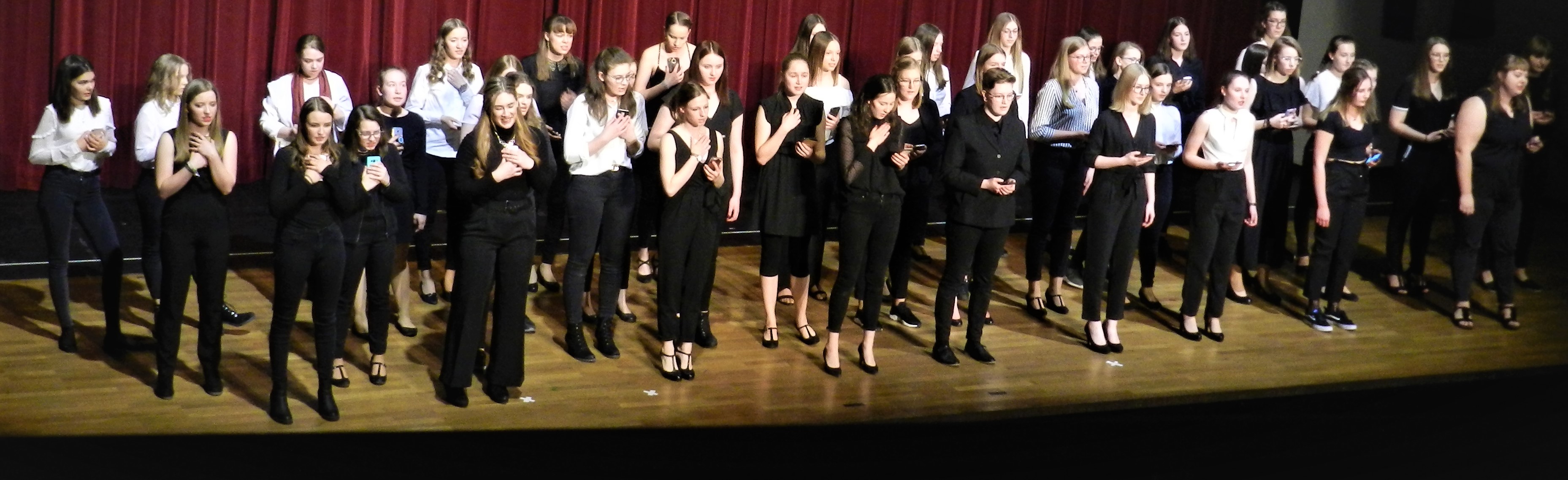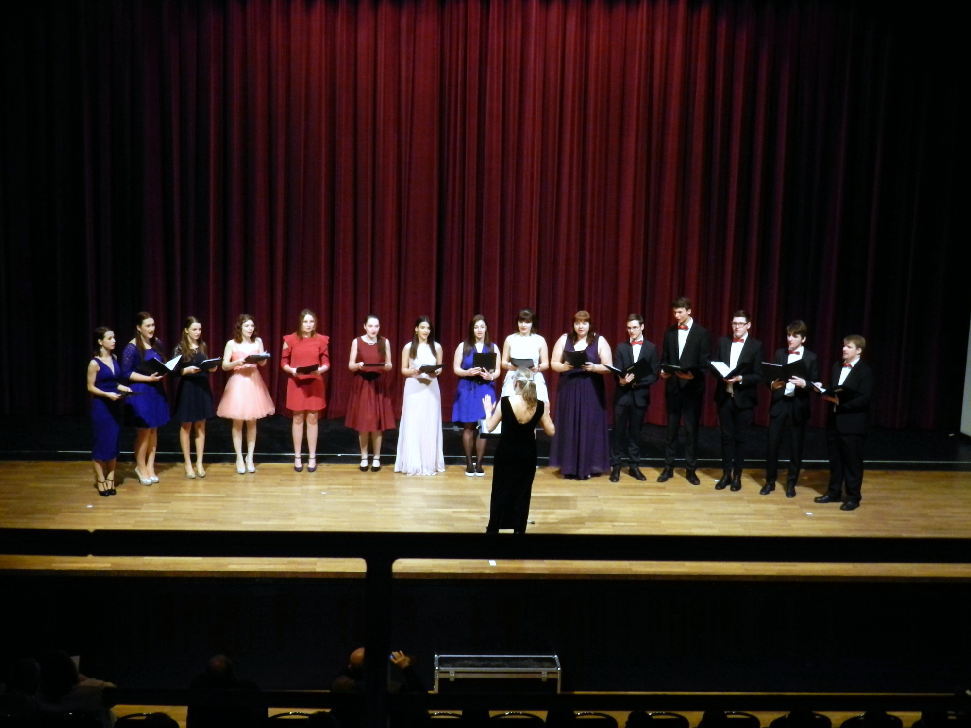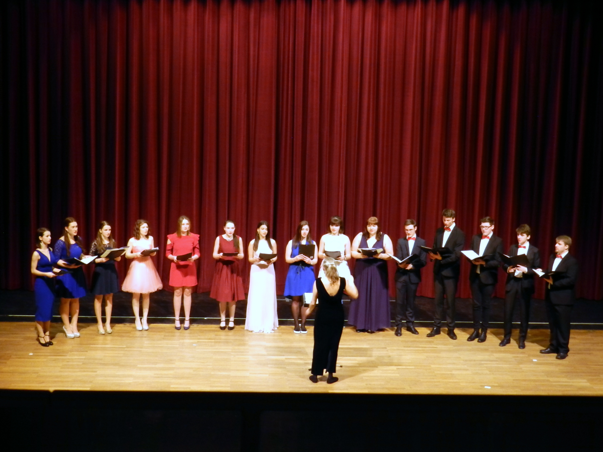 Nachdem vorher schon der Unterstufenchor aufgetreten war, gab nun der große Chor sein bestes. Dieser sang „Come with me“ von Yolán Trabsky, „Minnelied“ (Ernst Lothar von Knorr), „All mein Gedanken“ (Johannes Brahms), „There was an old Lady of France“ (Mátyás Seiber), „Zum Tanze da geht ein Mädel“ – ein schwedisches Tanzlied – und „When I fall in love“ von Victor Young.